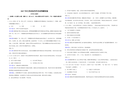 2017年上海市高中毕业统一学业考试历史试卷(答案版).doc