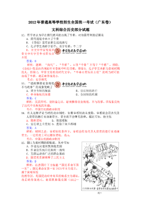 2012年高考福建卷(文综历史部分)(含答案).doc