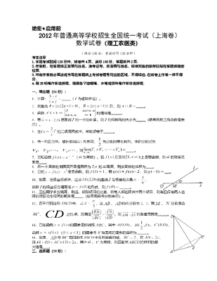 2012年上海高考数学真题(理科)试卷(word解析版).doc