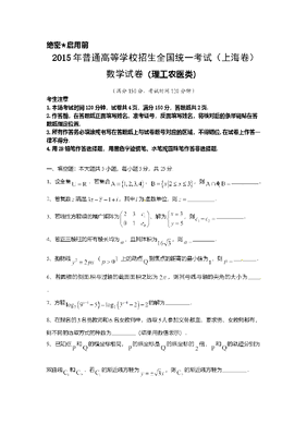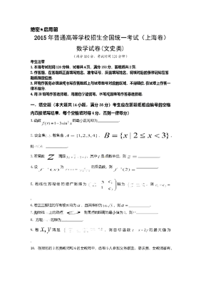2015年上海高考数学真题(文科)试卷(word解析版).doc