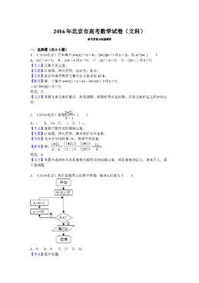 2016年北京高考文科数学试题及答案.doc
