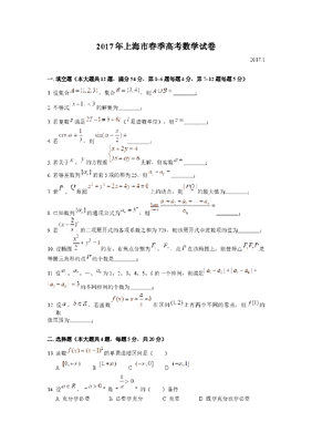 2017年上海高三数学春考试卷(含答案).docx