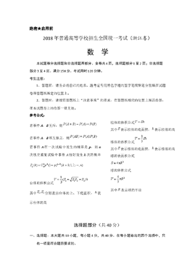 2018年高考浙江高考数学试题及答案(精校版).docx