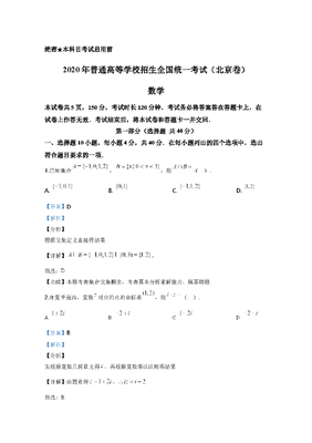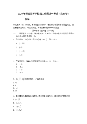 2020年高考浙江高考数学试题及答案(精校版).doc