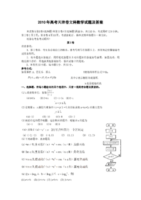 2011年高考理科数学试题(天津卷)及参考答案.docx