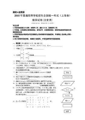 2010年上海高考数学真题(文科)试卷(word解析版).doc