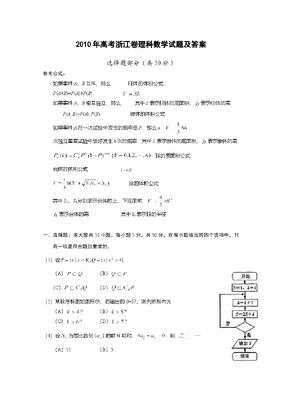 2010年浙江高考数学(理科)试卷(含答案).doc