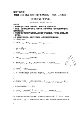2011年上海高考数学真题(文科)试卷(word解析版).doc