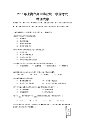 2013年上海市高中毕业统一学业考试物理试卷(原卷版).doc