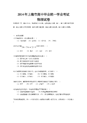 2014年上海市高中毕业统一学业考试物理试卷(word解析版).doc