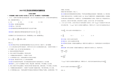 2015年上海市高中毕业统一学业考试物理试卷(答案版).doc