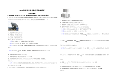 2016年天津市高考物理试卷解析版 .doc