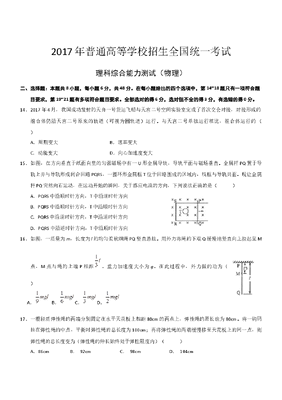 2017年高考全国3卷理综物理试题(word精校版).docx