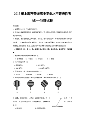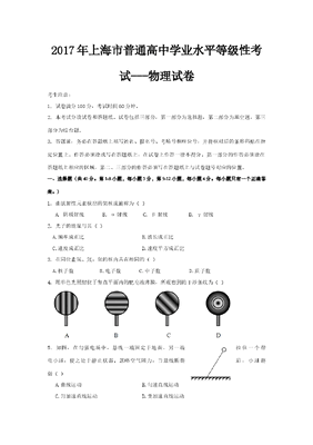 2017年上海市高中毕业统一学业考试物理试卷(答案版).doc