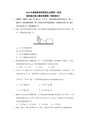 2018年全国统一高考物理试卷(新课标ⅲ)(原卷版).doc