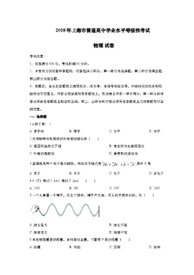 2018年上海市高中毕业统一学业考试物理试卷(word解析版).doc