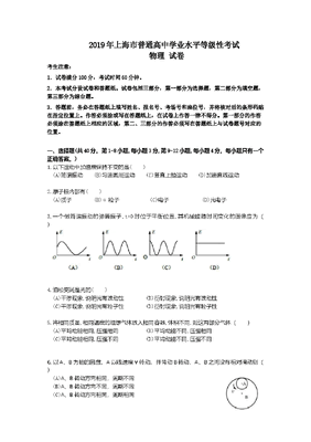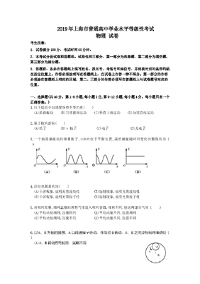 2019年上海市高中毕业统一学业考试物理试卷(答案版).doc
