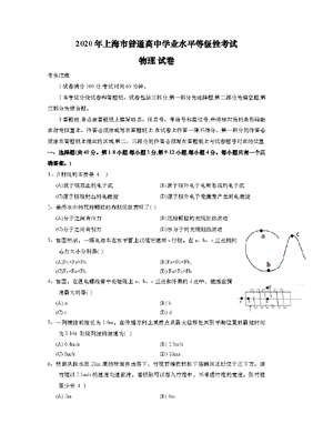 2020年上海市高中毕业统一学业考试物理试卷(原卷版).doc