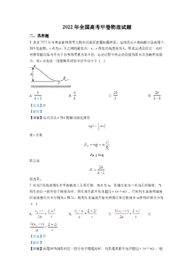 精品解析:2022年全国统一高考甲卷物理试题(解析版).docx