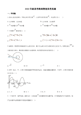 精品解析:2022年新高考海南物理高考真题(缺第6题和第12题)(原卷版).docx