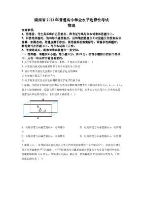 精品解析:2022年新高考湖南物理高考真题(原卷版).docx