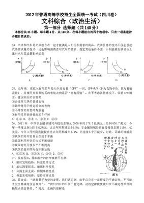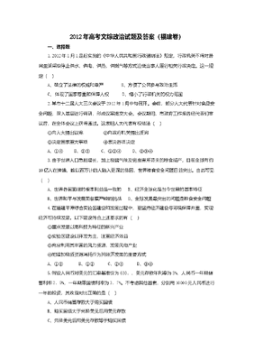 2012年高考福建卷(文综政治部分)(含答案).doc