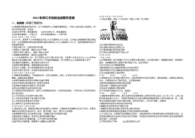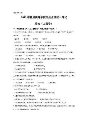 2012年上海市高中毕业统一学业考试政治试卷(答案版).doc