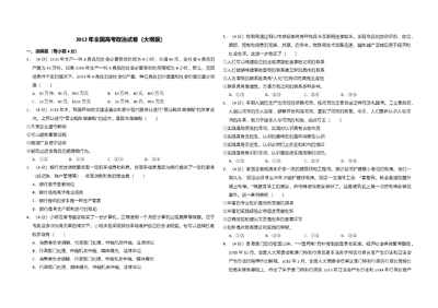 2012年全国统一高考政治试卷(大纲版)(原卷版).doc