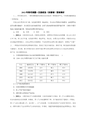 2013年高考安徽卷(文综政治部分)(含答案).doc