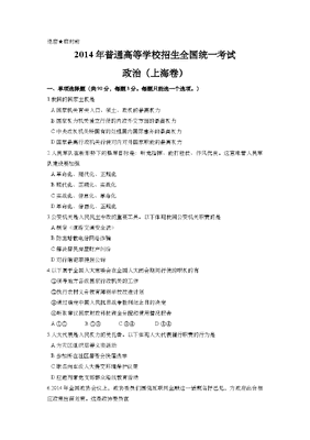 2014年上海市高中毕业统一学业考试政治试卷(答案版).doc