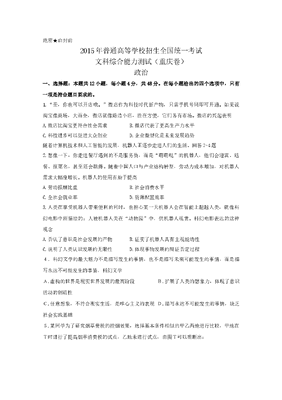 2015年高考文综(重庆卷)政治试题及答案.doc