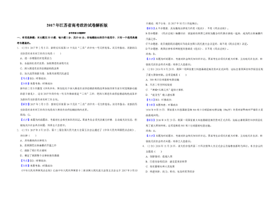 2017年江苏省高考政治试卷解析版 .doc