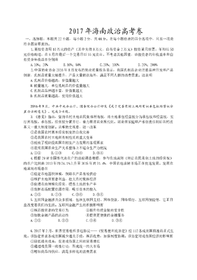 2017年海南省高考政治试题及答案.doc