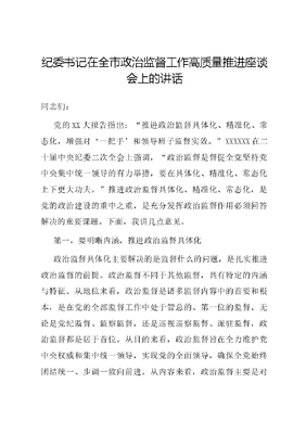 纪委书记在全市政治监督工作高质量推进座谈会上的讲话.docx