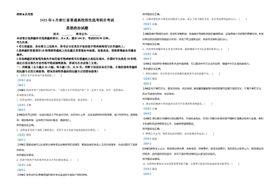 2021年6月浙江省普通高校招生选考科目考试思想政治试题(解析版).doc