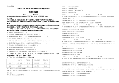 2021年6月浙江省普通高校招生选考科目考试思想政治试题(原卷版).doc
