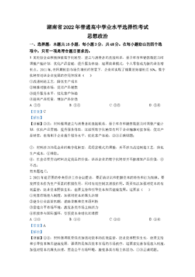 精品解析:2022年湖南高考政治试题(解析版).docx