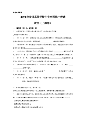 2004年上海市高中毕业统一学业考试政治试卷(答案版).doc