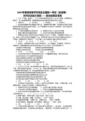 2009年高考安徽卷(文综政治部分)(含答案).doc
