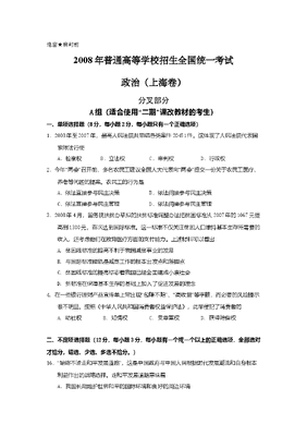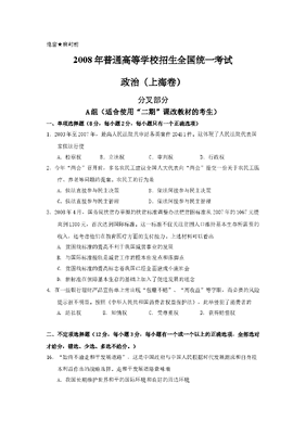 2008年上海市高中毕业统一学业考试政治试卷(答案版).doc
