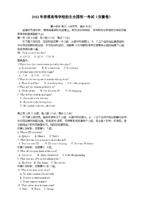2012年高考英语试卷(全国卷ii)(原卷版).doc