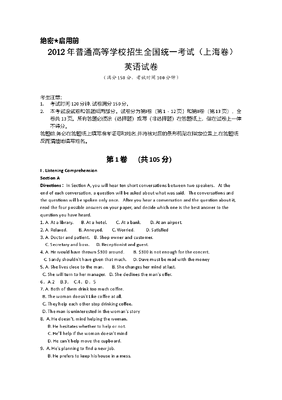 2012年上海高考英语真题试卷(word解析版,含听力原文).doc