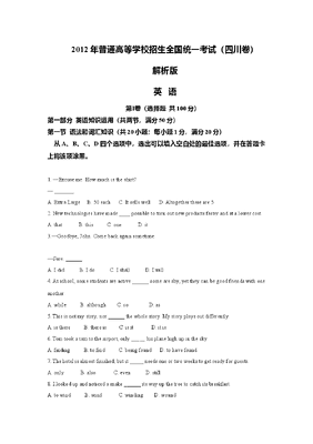 2012年四川高考英语试题及答案word版.doc