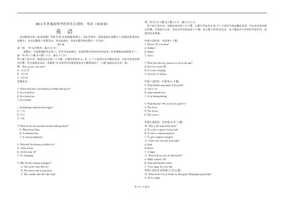 2012年海南高考英语试题和答案.pdf