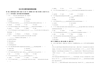 2012年天津市高考英语试卷 .doc