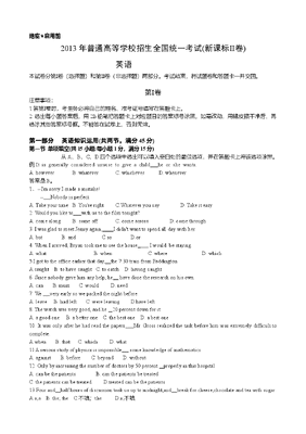 2013年高考英语试卷(新课标Ⅰ)(原卷版).doc