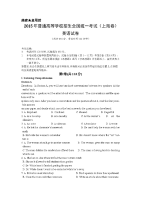 2015年上海高考英语真题试卷(word解析版,含听力原文).doc