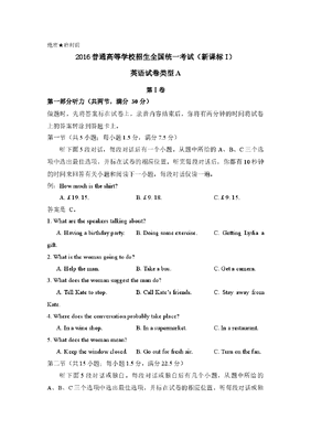 2016年高考英语试卷(新课标Ⅰ)(原卷版).doc