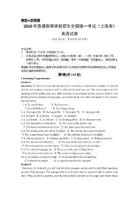 2016年上海高考英语真题试卷(word解析版,含听力原文).doc