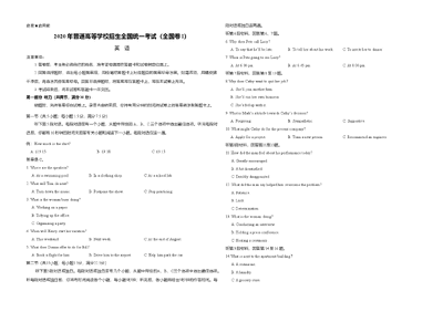 2020年北京市高考英语试卷(机考 无听力)(原卷版).doc